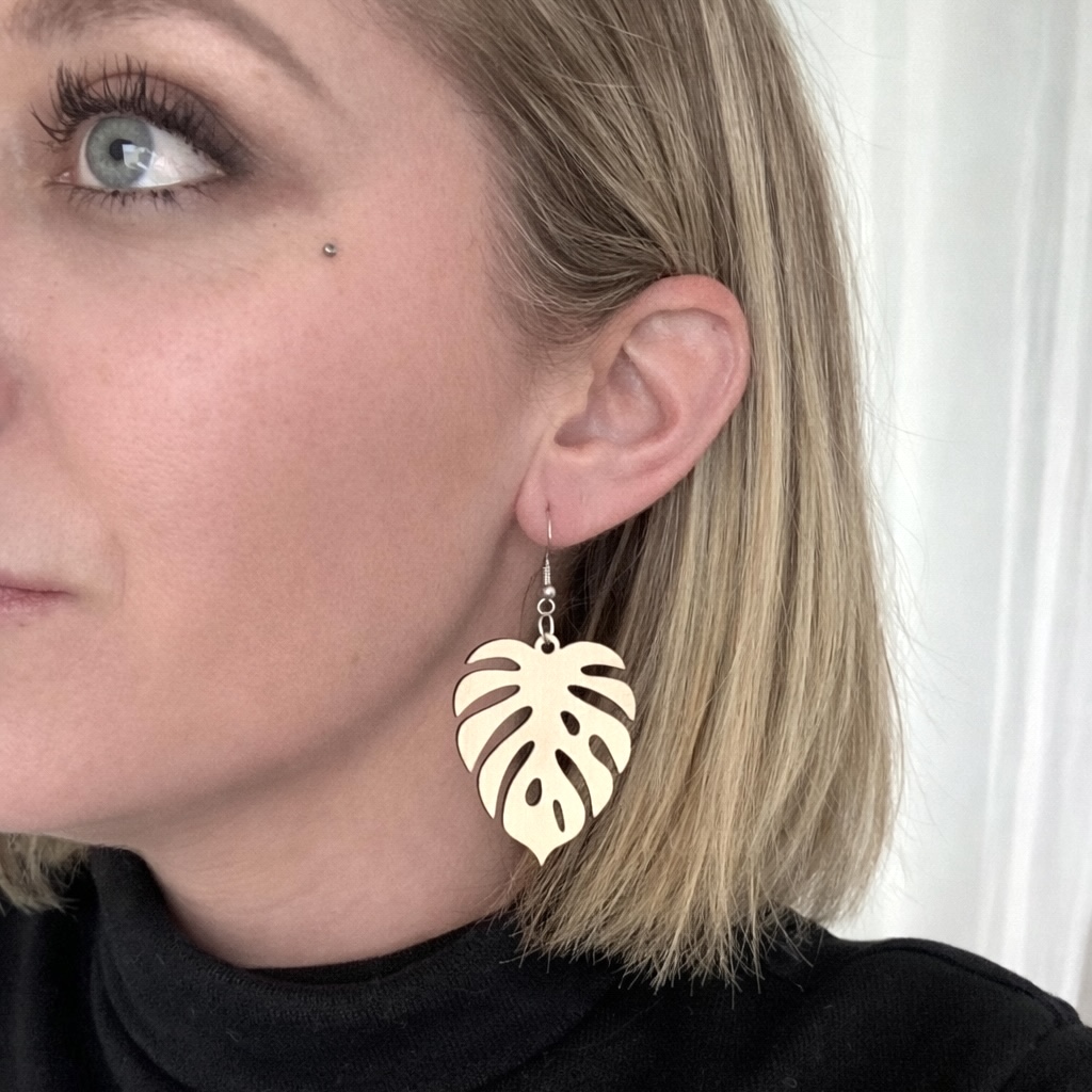 Boucles d’oreilles en bois monstera