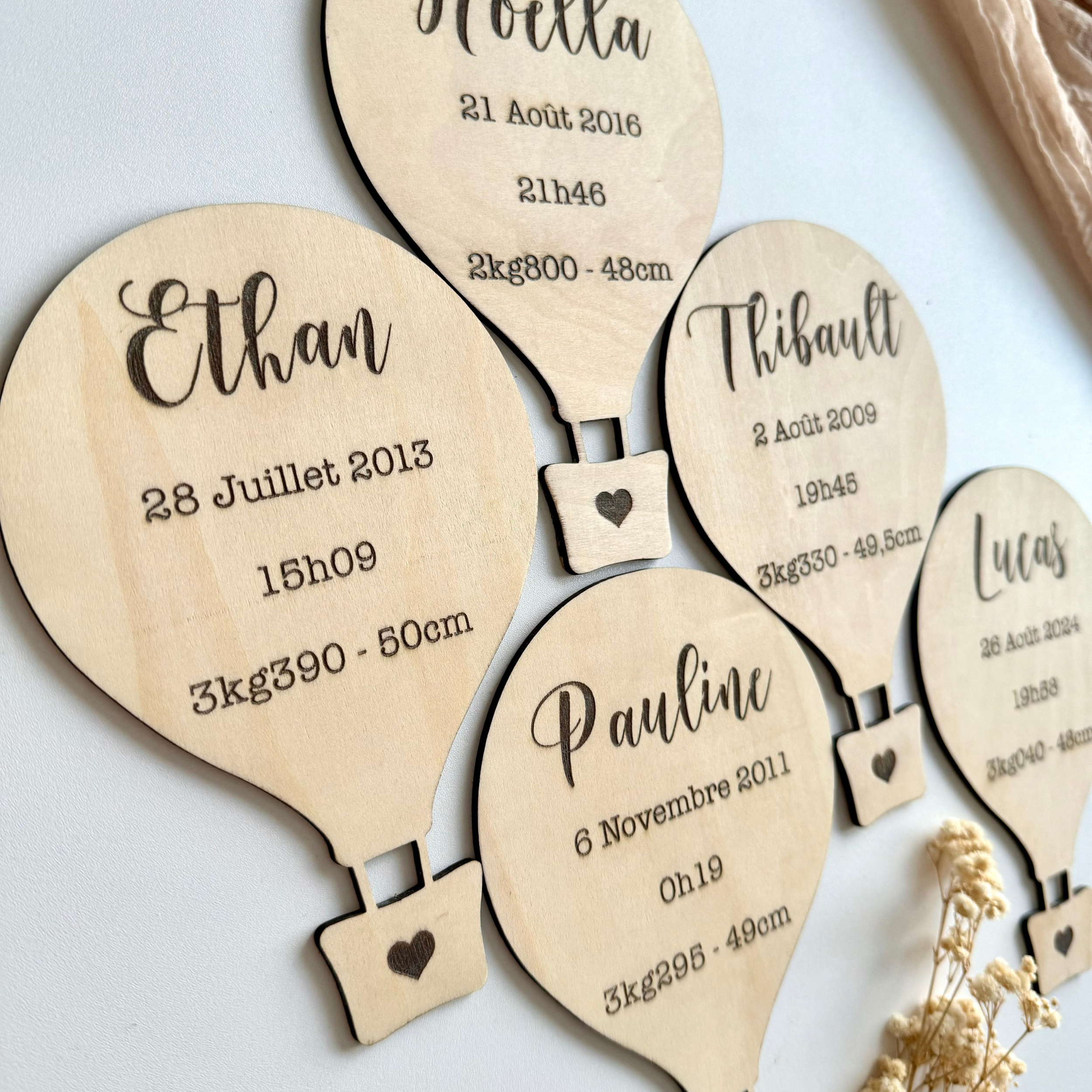 – sa date de naissance, son poids, sa taille et son heure pour un souvenir indelébile.