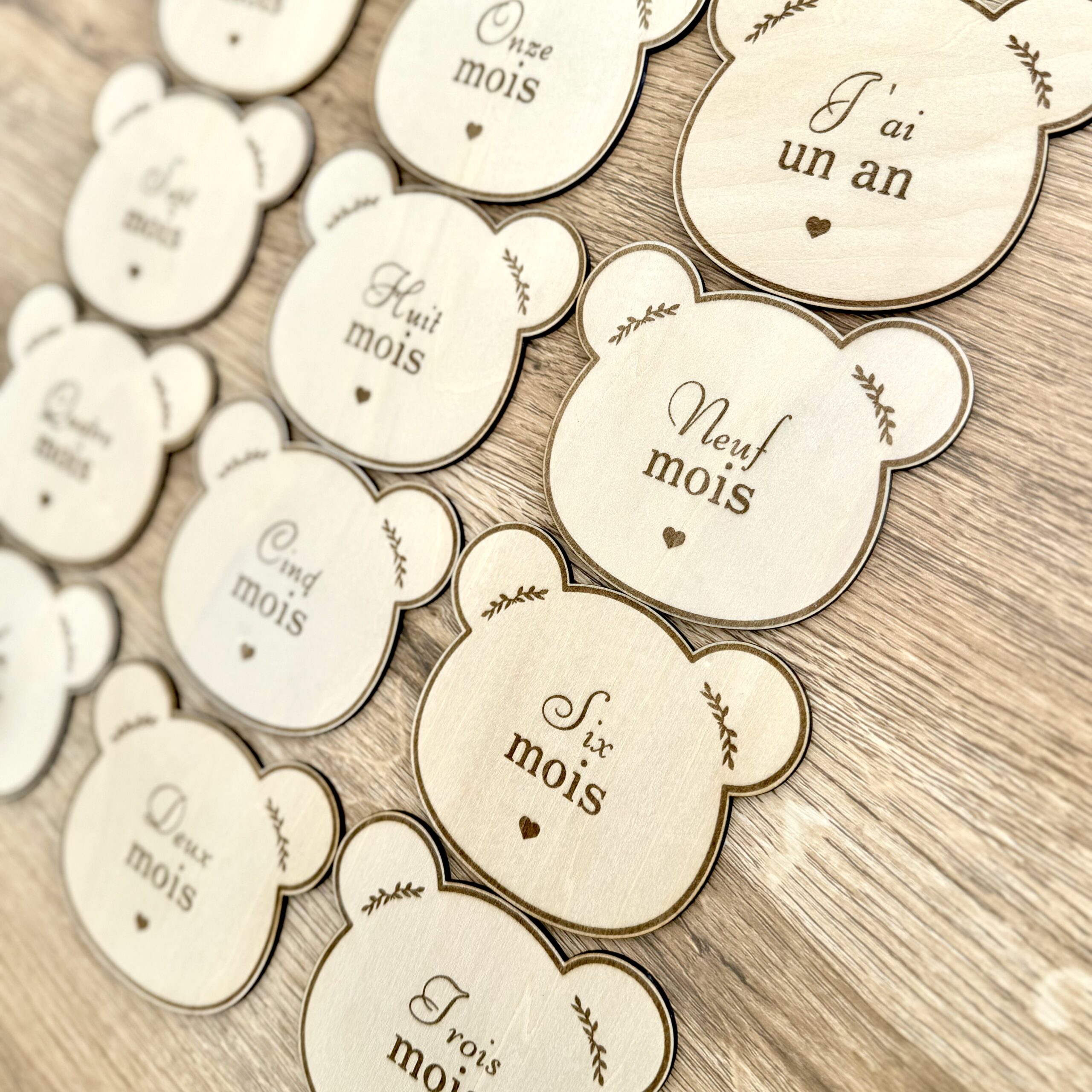 Capturez les moments précieux de votre bébé mois après mois grâce à ces cartes étapes en bois naturelles et intemporelles.