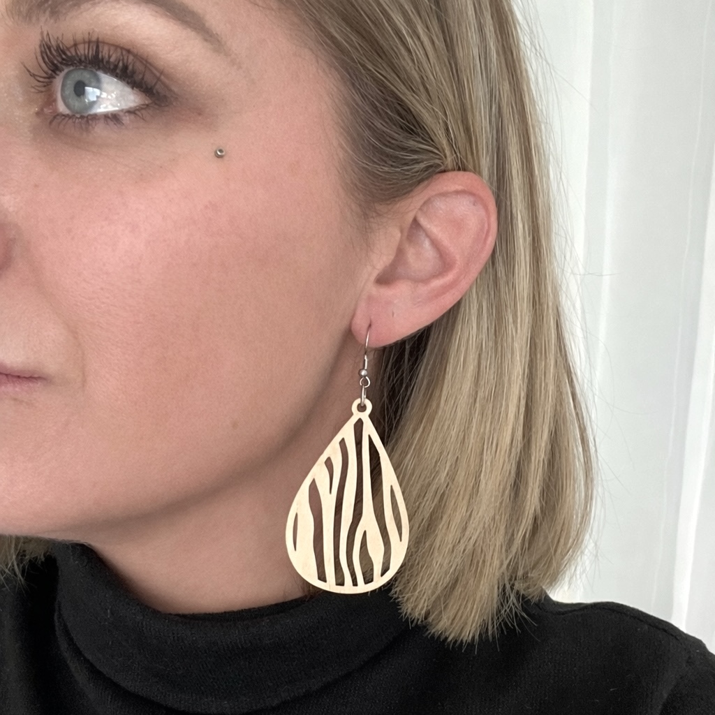 Ces boucles d’oreilles en bois en forme de goutte se distinguent par leurs lignes graphiques et élégantes. Le design épuré de nos bijoux s’adapte aussi bien à un look casual qu’à une tenue plus habillée.