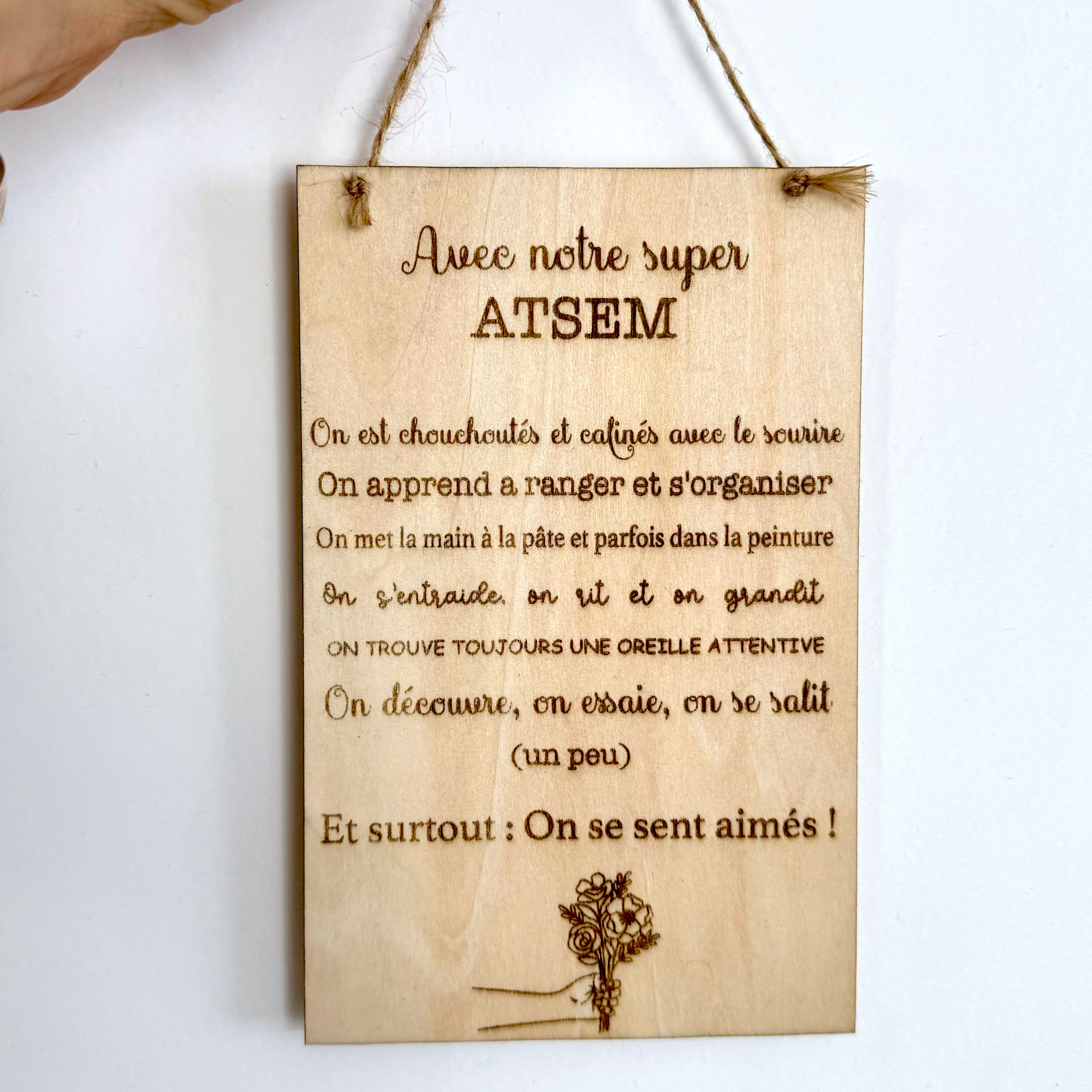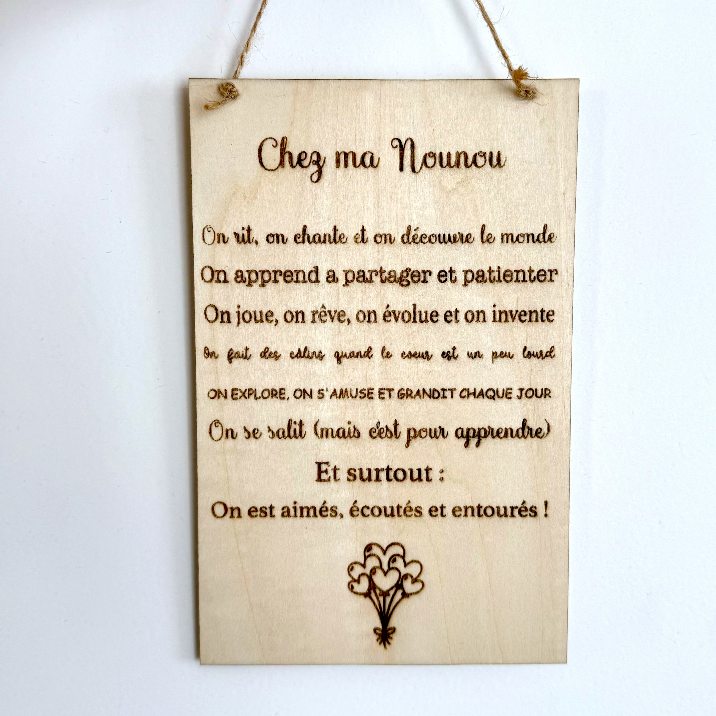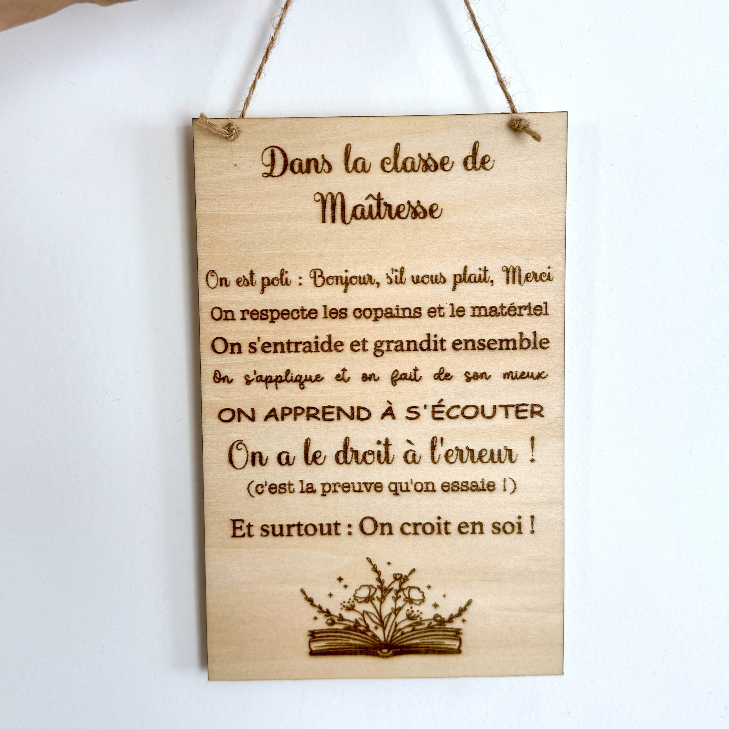 Une jolie pancarte en bois gravée, pour toucher en plein cœur celles et ceux qui accompagnent votre enfant chaque jour. Avec son message positif et bienveillant, elle trouvera naturellement sa place dans une classe, une salle de jeu ou un bureau.